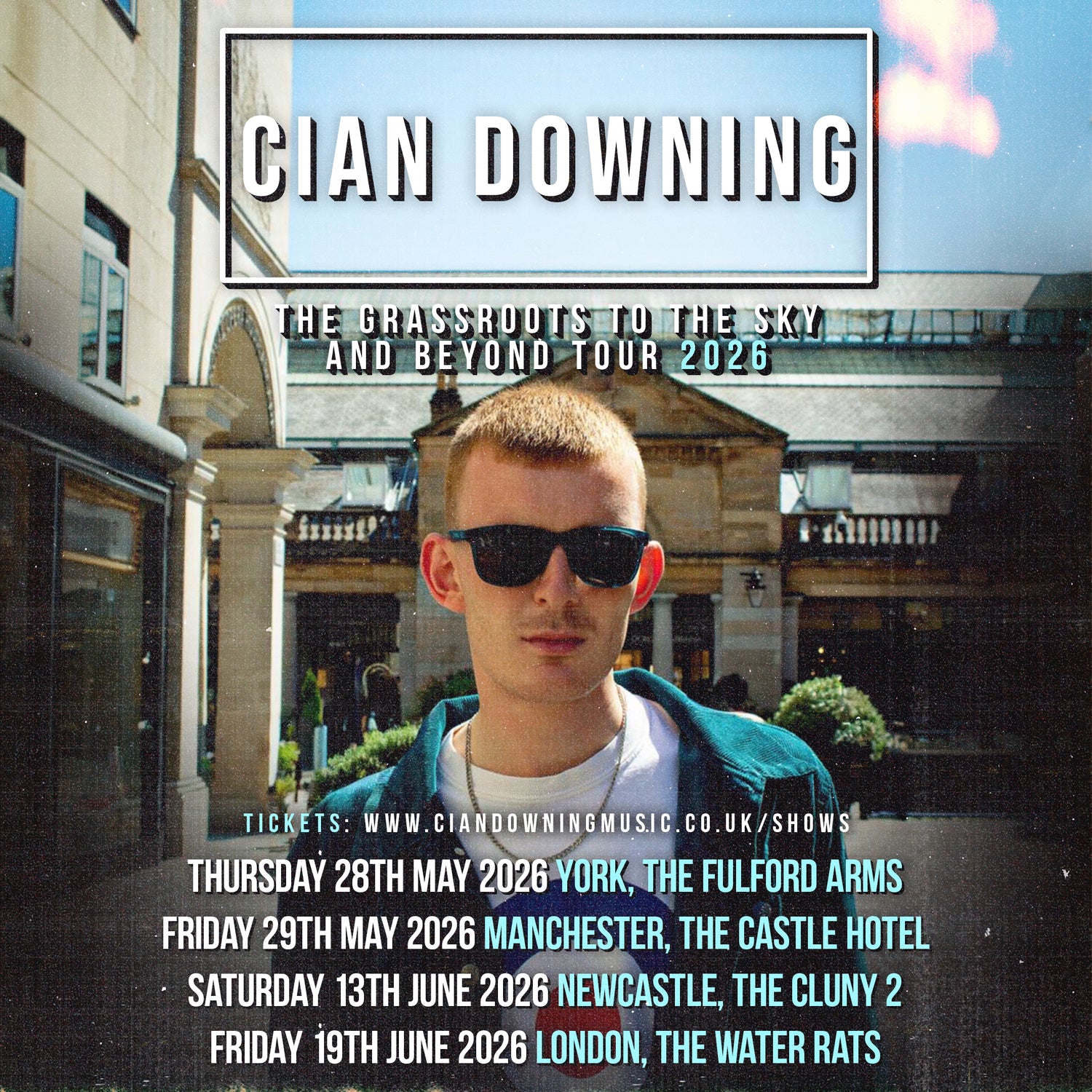 With a sound that is at once nostalgic and modern, and stagecraft honed in the pubs of London town, Cian Downing, is emerging onto the British indie scene with his infectious energy and refreshing melodic songwriting in the style of Billy Bragg, Paul Weller and The Specials. Hailing from Stevenage, Hertfordshire, Cian has toured the country over the past 12 months alongside his superb four-piece backing band. Cian’s unique blend of mod, indie and ska music is best exemplified by his debut album The Grassroots to the Sky, released on Cian’s own label Loft End Records, to much fanfare from his devoted fanbase. Cian’s previous live and festival credits include Isle of Wight Festival 2023, Brighton Mod Weekender 2024, London’s 100 Club, Blam Blam Fever Weekender, and many more!